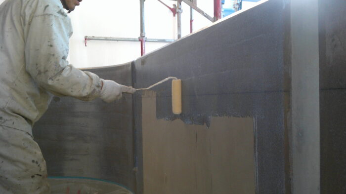 午後からは職人さん総出で一回目の下塗りとなるシーラーを塗装しました。