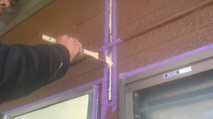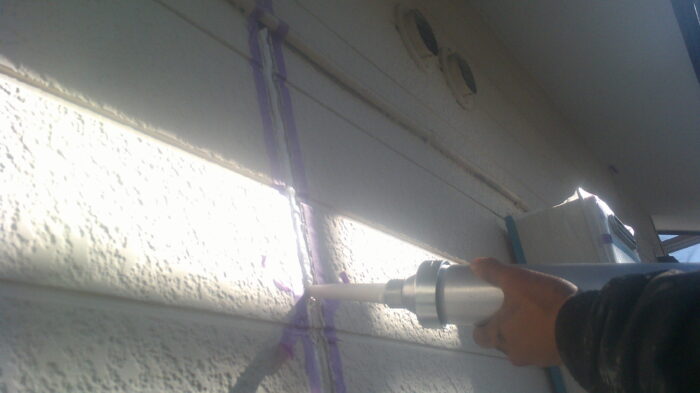 今日は塗装前のアパートのコーキングを行いました