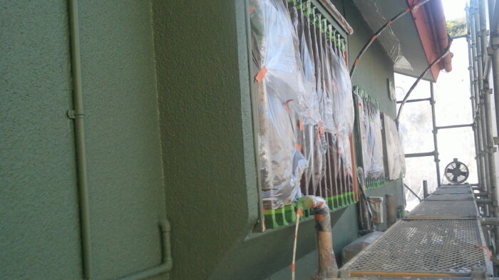 先日より施工していた住宅の塗り替え工事の下塗り、中塗りが終りました。