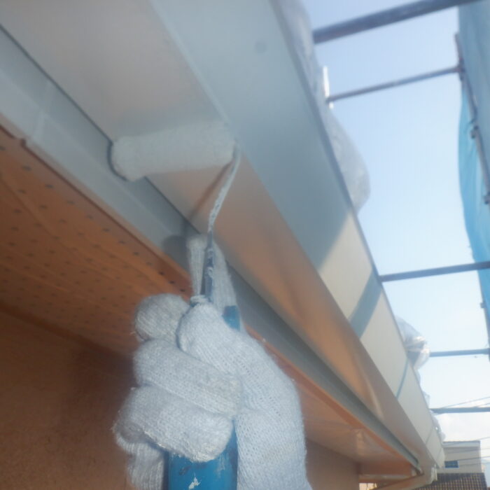 中塗りではローラーと刷毛を使い細かい部分までしっかり塗りました。