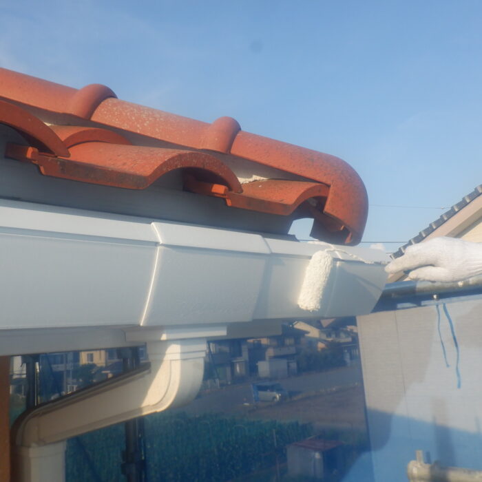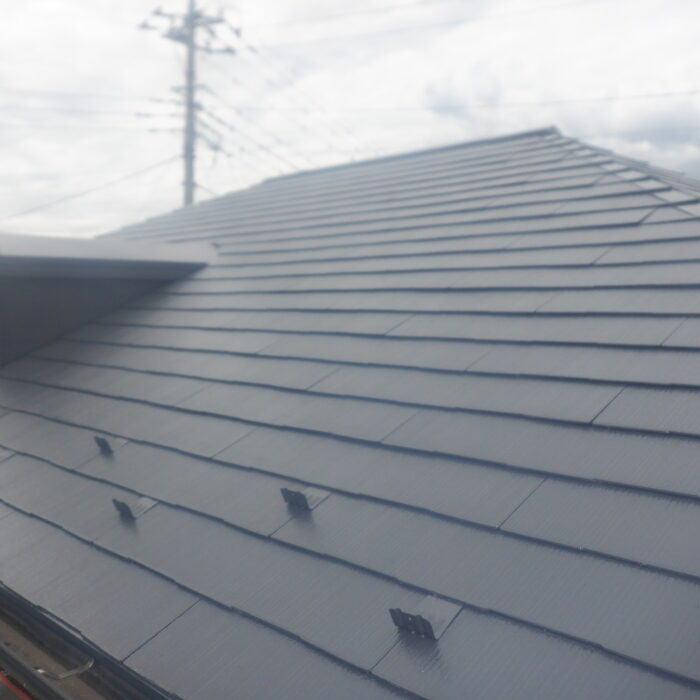 すでに中塗りまで終わってますので上塗りをして屋根は完了となりました。