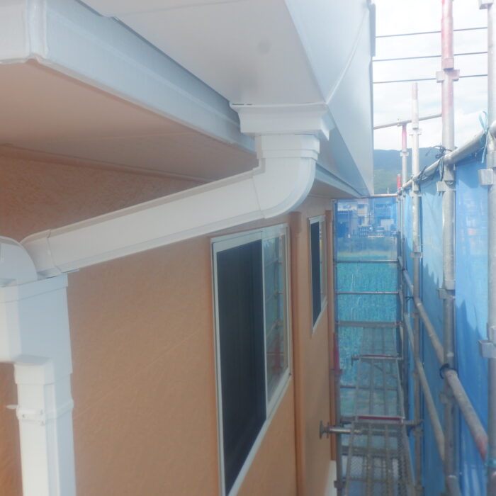 すでに外壁は終わっていますので残りの破風や樋を塗装しました。