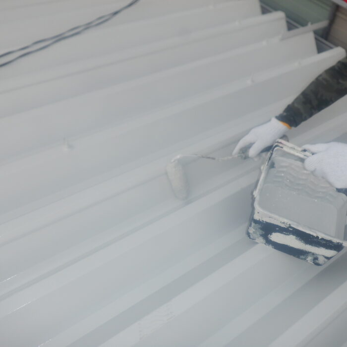 アステックペイント屋根用遮熱塗料(スーパーシャネツサーモSi)で中塗り上塗りを行いました。