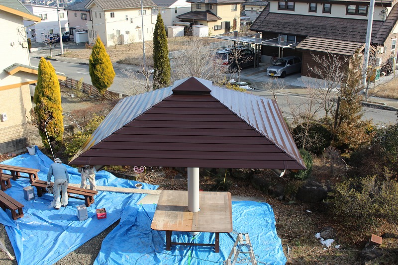 2015.01.16 倉庫シャッター吹き付け&屋根! 南アルプス市のA様邸。 本日は倉庫の塗装と家の雨樋などを塗装しました! ケレン+洗浄+水拭き+錆び止め塗装+2液溶剤シリコン2回塗り。 手間がかかっています・・・! シャッターの吹き付け。 下地はケレンの後にミッチャクロン。 2回目の塗装。 帯に色を入れています。 雨樋も美しく仕上がりました!