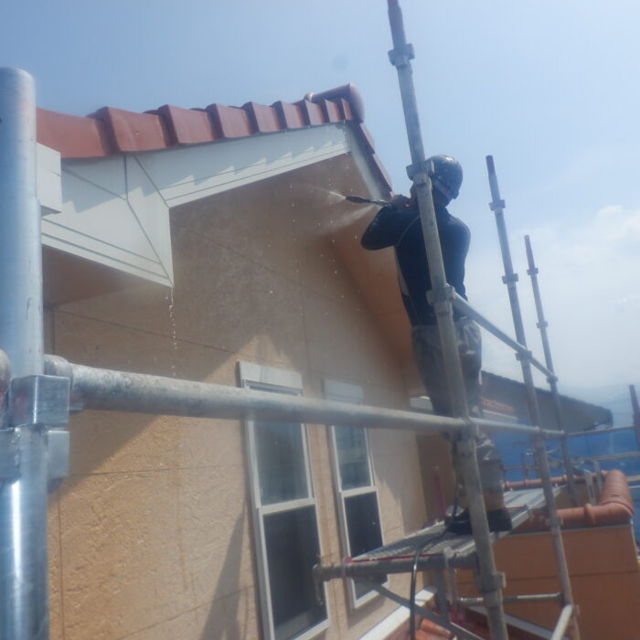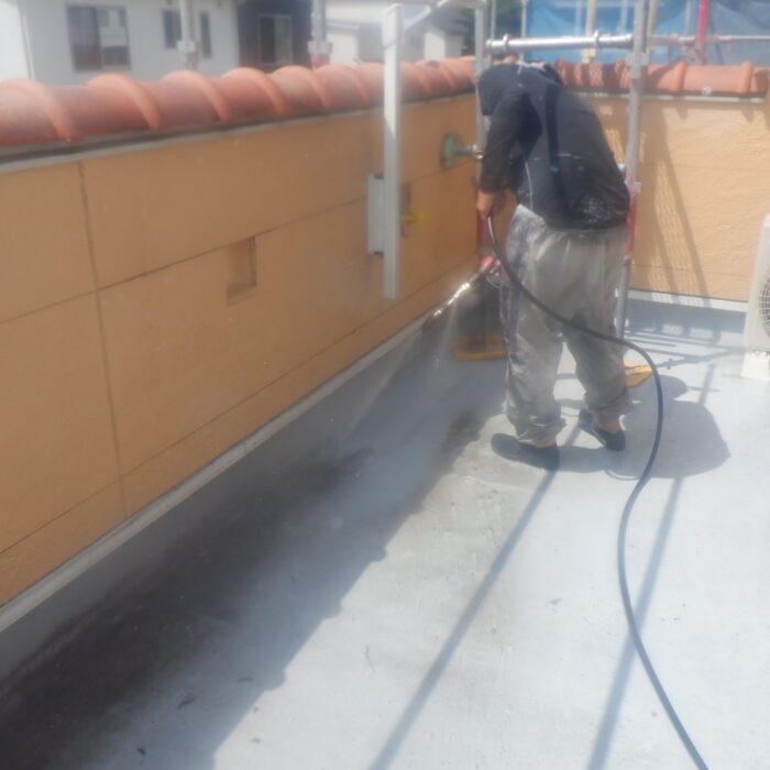 まずは高圧洗浄でノロやホコリを落とし下地処理をおこないました。