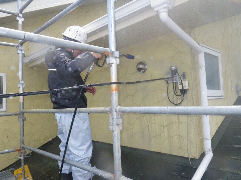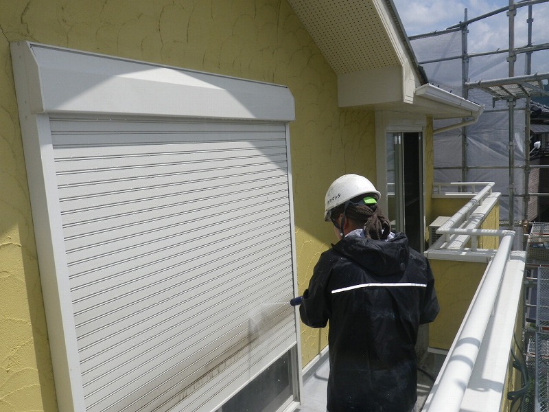 養生まで終わっていますので、本日は外壁と屋根の下塗りをします!