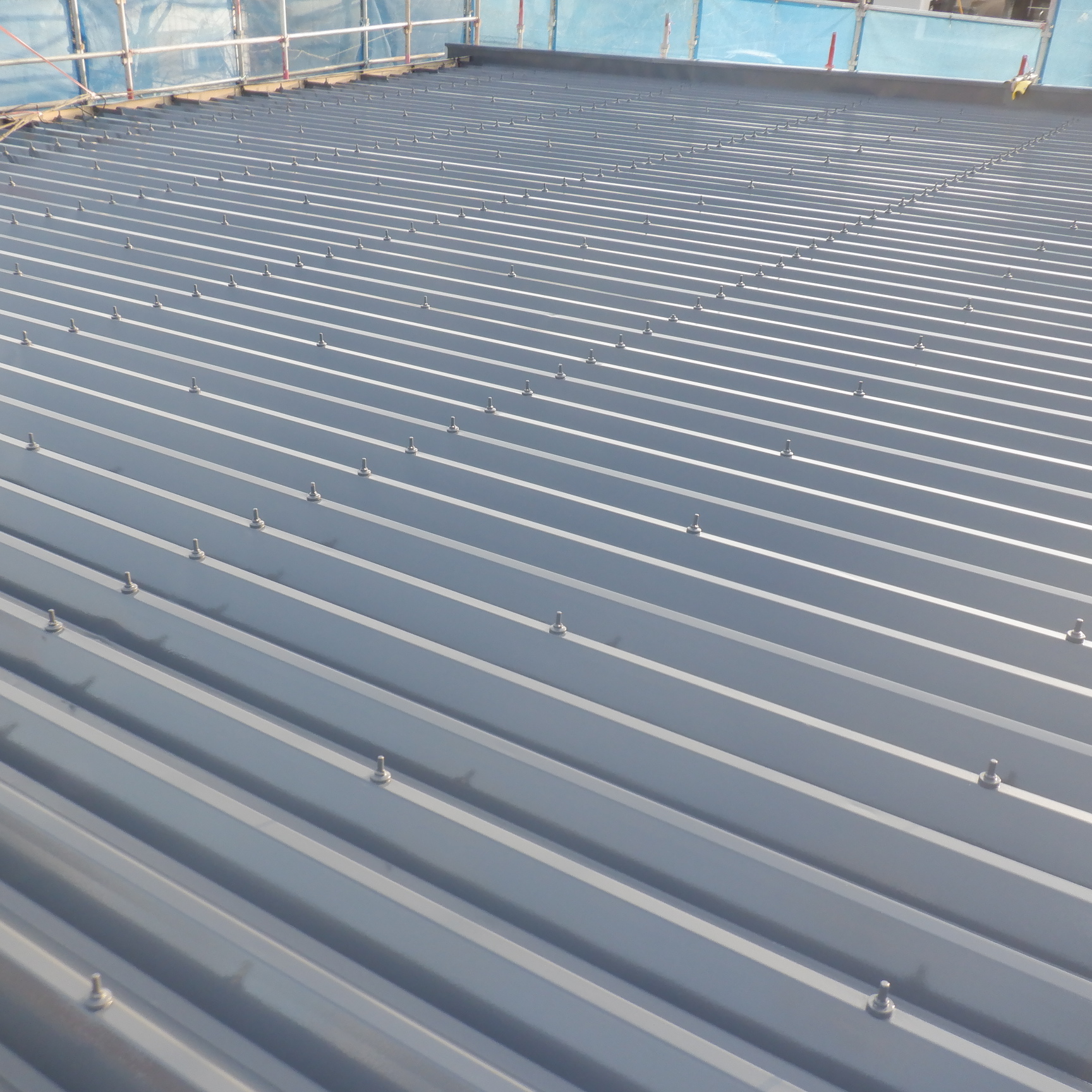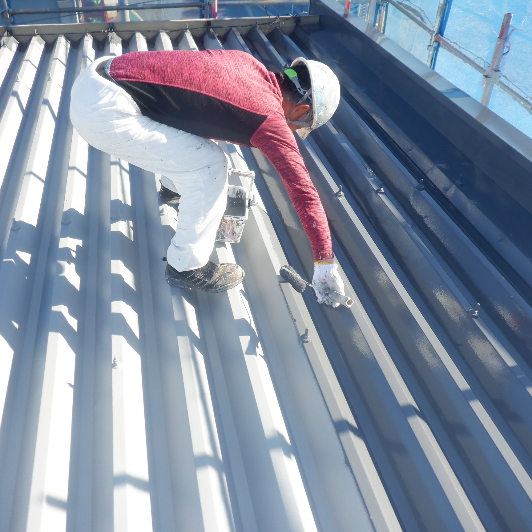 先日ご紹介致しました折板屋根の中塗りをしてきました。