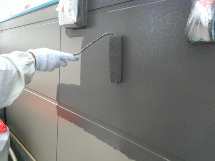 2025.11.17 韮崎市 K様邸 下塗り 中塗り 韮崎市K様邸の下塗りをしました。 K様邸では少し特殊な素材の壁でしたので下塗りは2液形のシーラーを塗装しました。 塗装前に外壁はケレンもしました。 乾燥後には中塗りもしました。